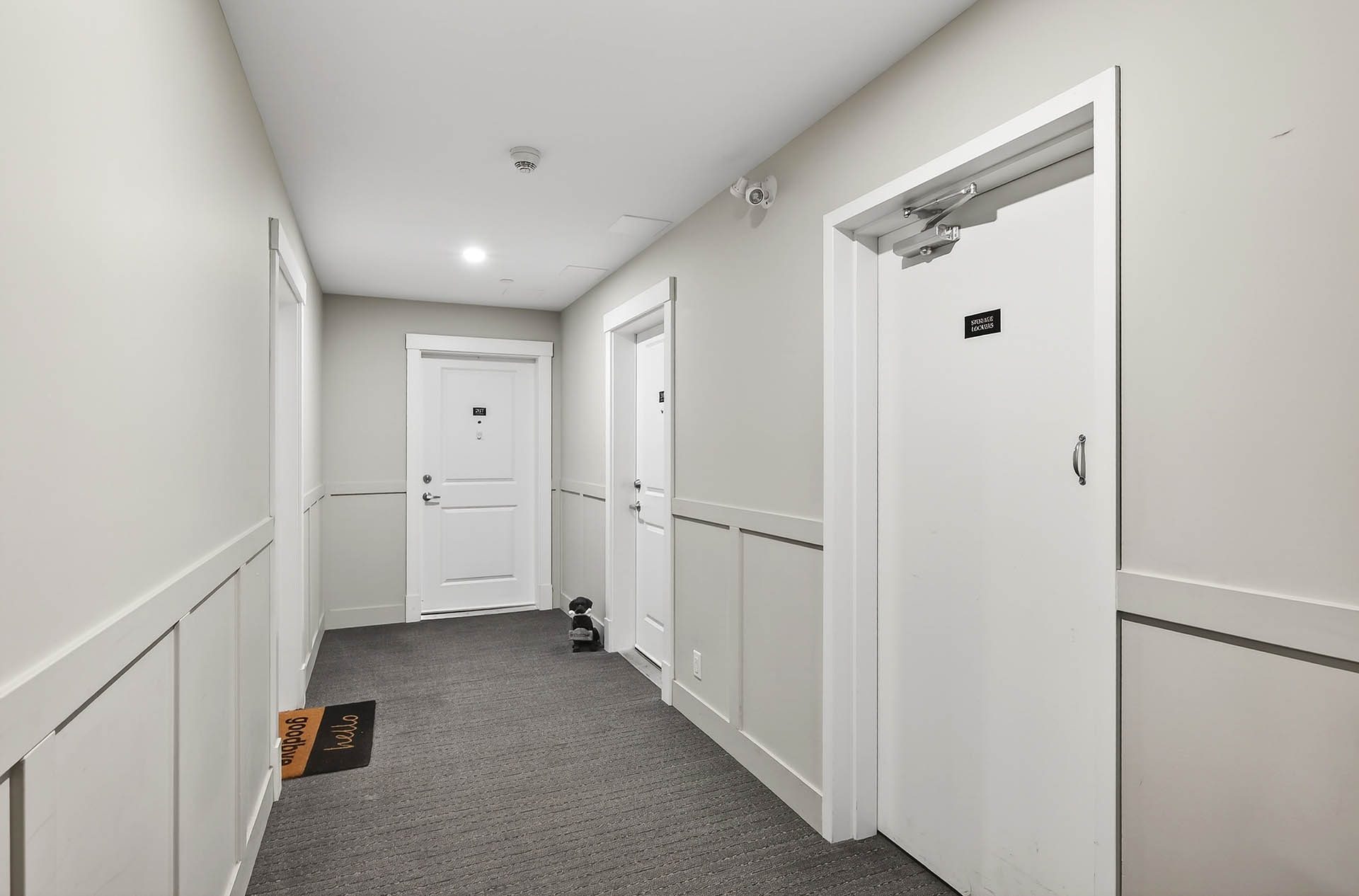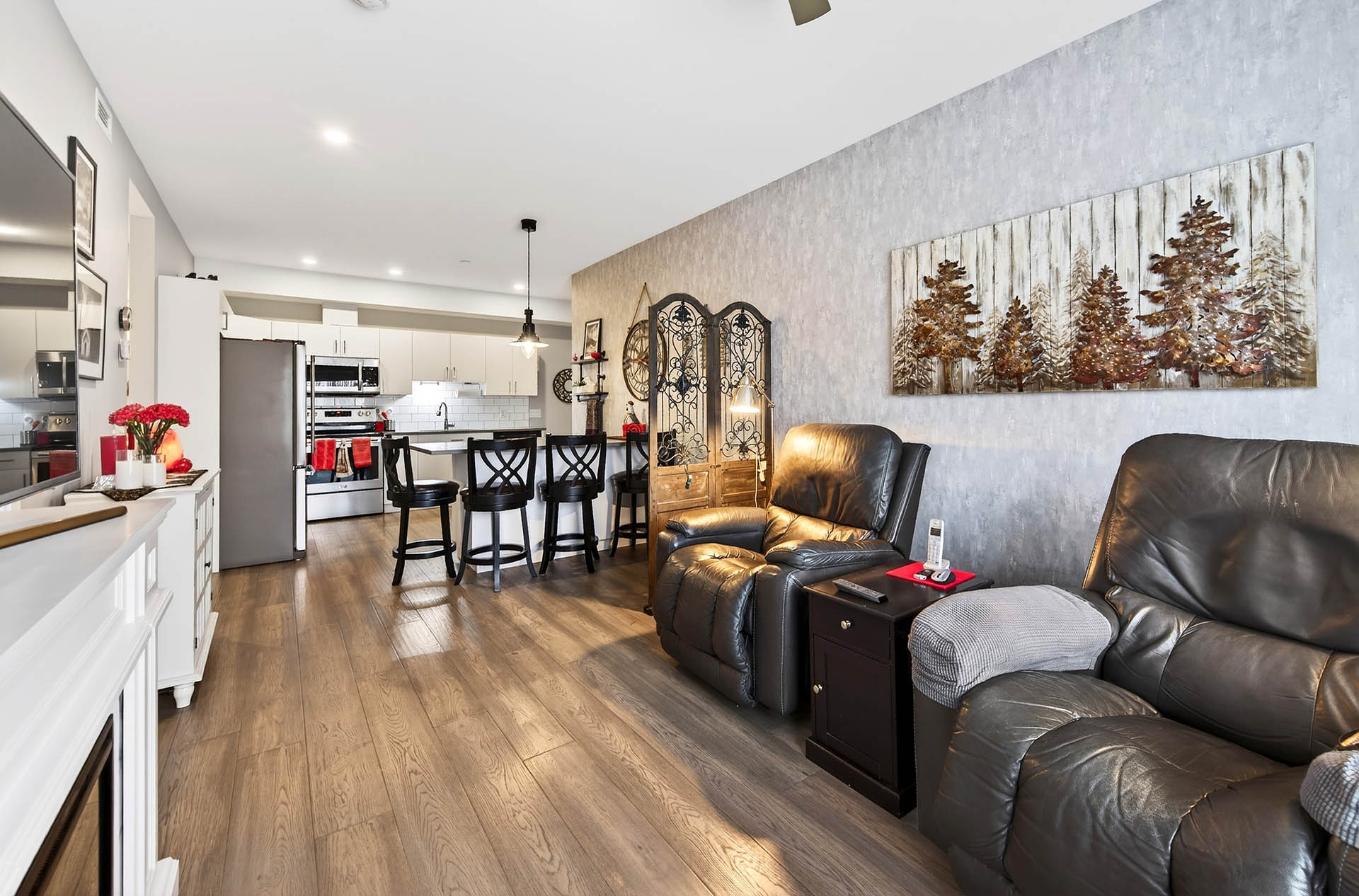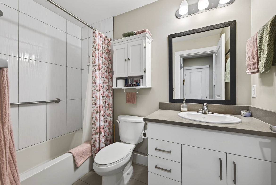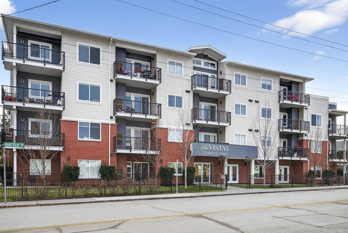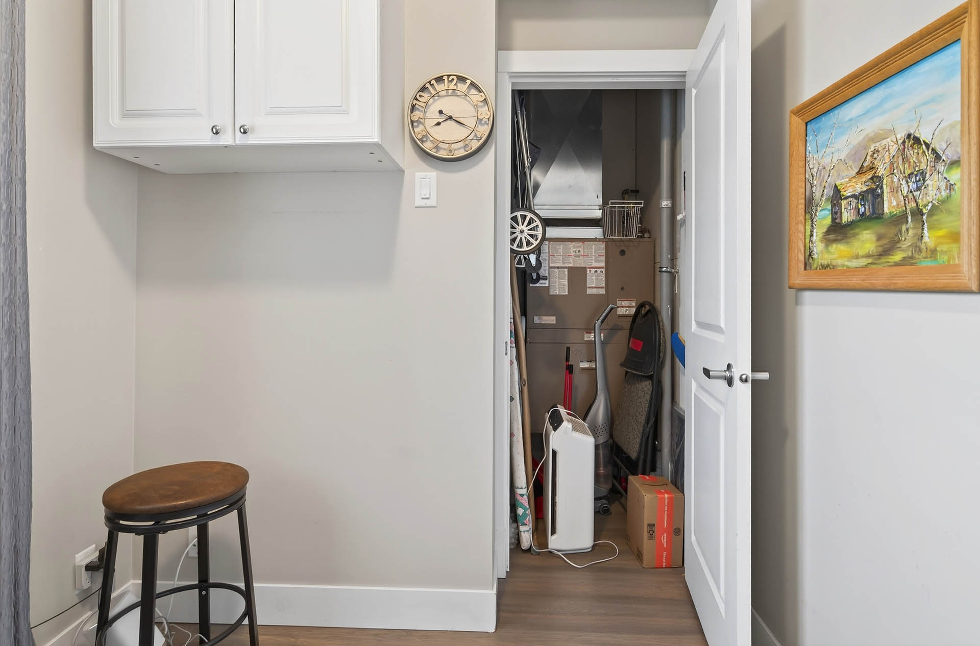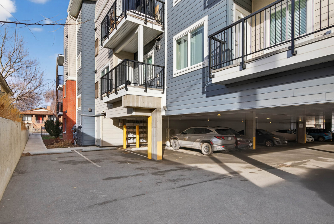 Welcome to this bright 1 bedroom + den corner unit, built in 2017 and offered by the original owners. Located on the second floor, this home features a larger-than-average deck with east and south exposure — perfect for morning sun and outdoor living. The open-concept kitchen includes upgraded appliances and an oversized island with added storage. The den (7’ x 8’4”) is ideal for a home office or guest space. Features include forced air natural gas heating with central A/C, in-suite laundry, secure fob entry with intercom, elevator access, a nearby storage locker, and a large community room for entertaining. Rentals are allowed and pets are permitted with strata approval. One covered parking stall is included. Enjoy an unbeatable downtown location with excellent walkability to shops, dining, and everyday amenities. A modern, move-in-ready home in a prime setting.
