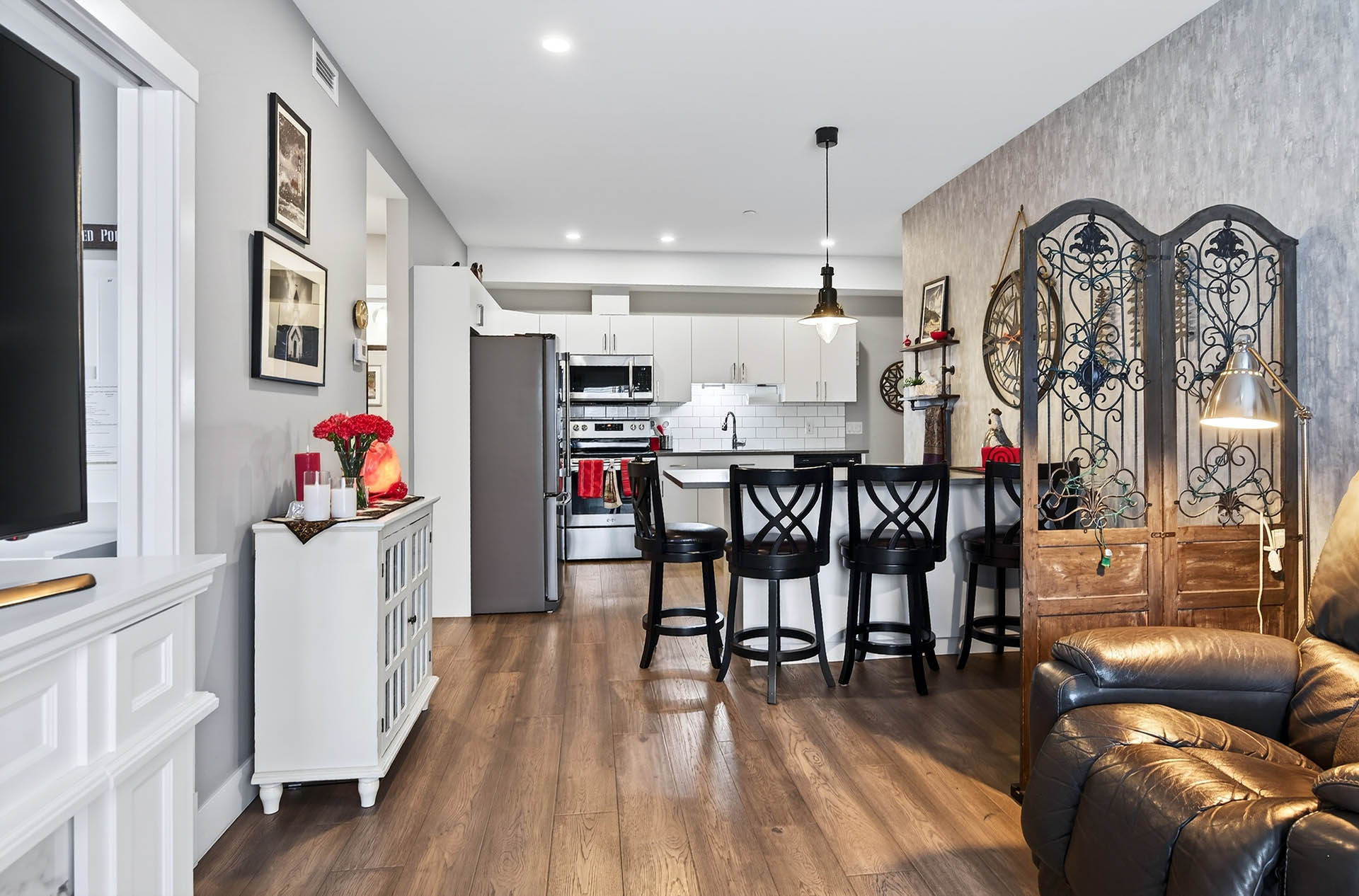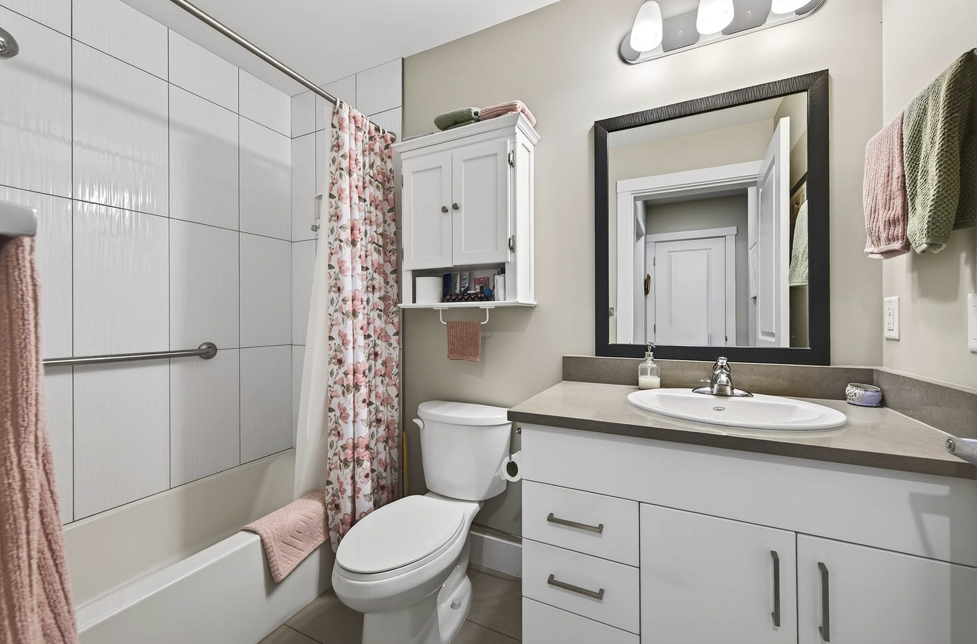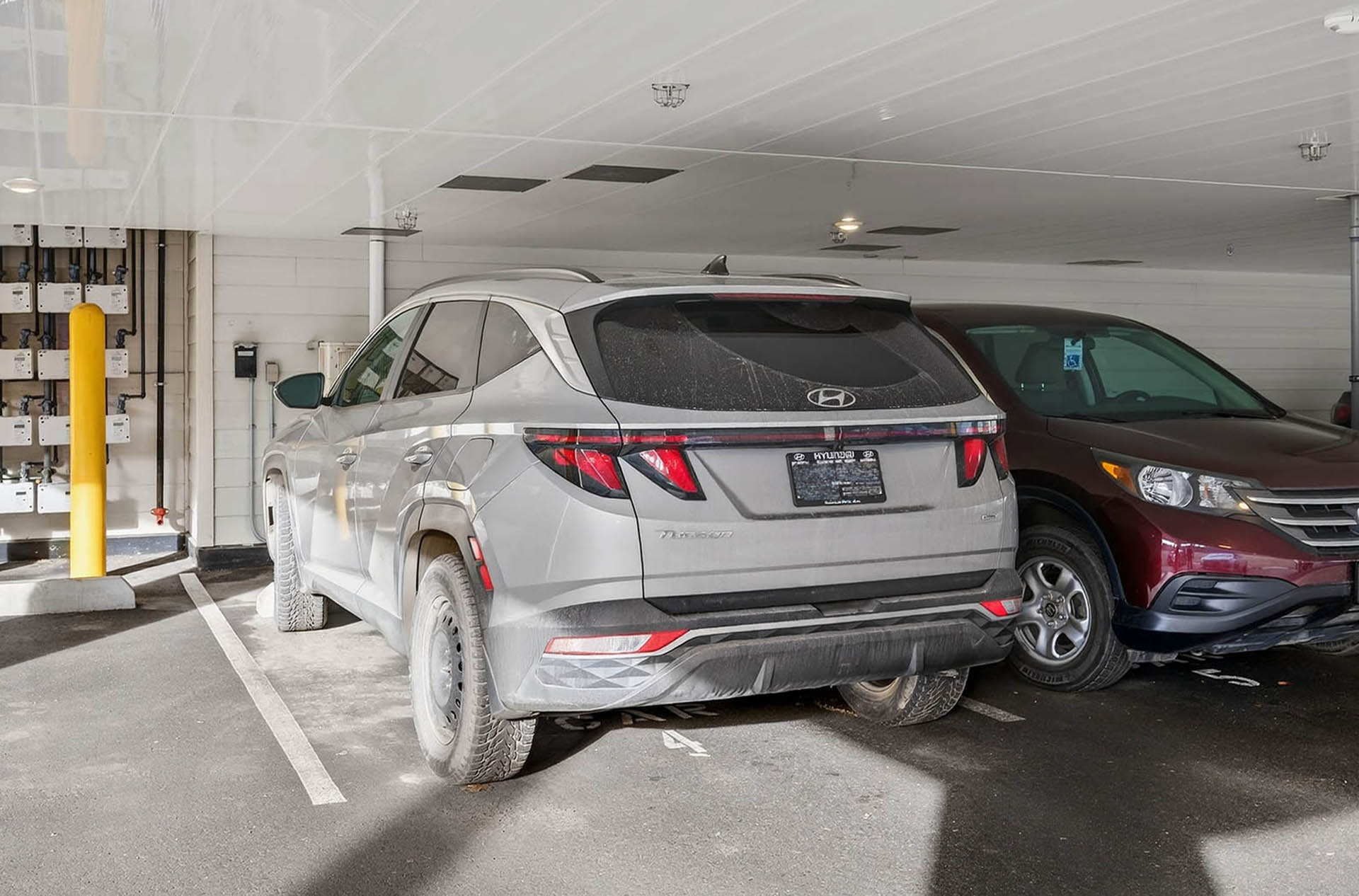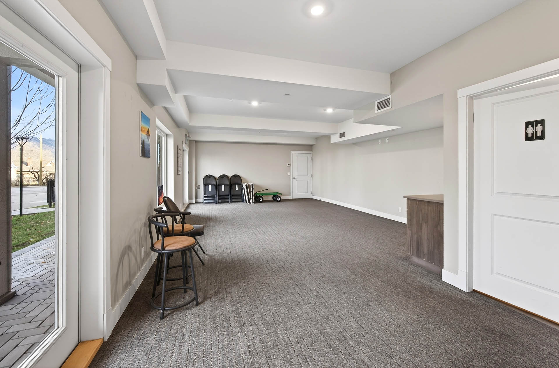Welcome to this bright 1 bedroom + den corner unit, built in 2017 and offered by the original owners. Located on the second floor, this home features a larger-than-average deck with east and south exposure — perfect for morning sun and outdoor living. The open-concept kitchen includes upgraded appliances and an oversized island with added storage. The den (7’ x 8’4”) is ideal for a home office or guest space. Features include forced air natural gas heating with central A/C, in-suite laundry, secure fob entry with intercom, elevator access, a nearby storage locker, and a large community room for entertaining. Rentals are allowed and pets are permitted with strata approval. One covered parking stall is included. Enjoy an unbeatable downtown location with excellent walkability to shops, dining, and everyday amenities. A modern, move-in-ready home in a prime setting.