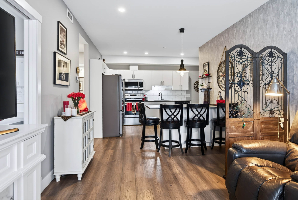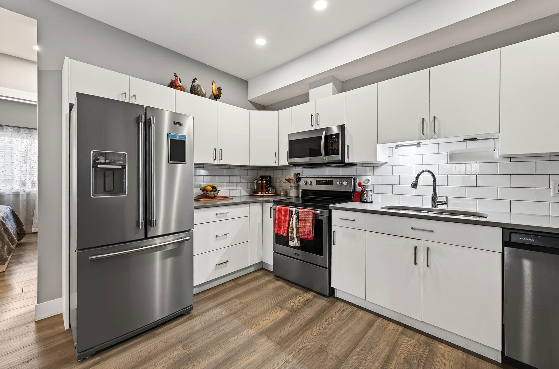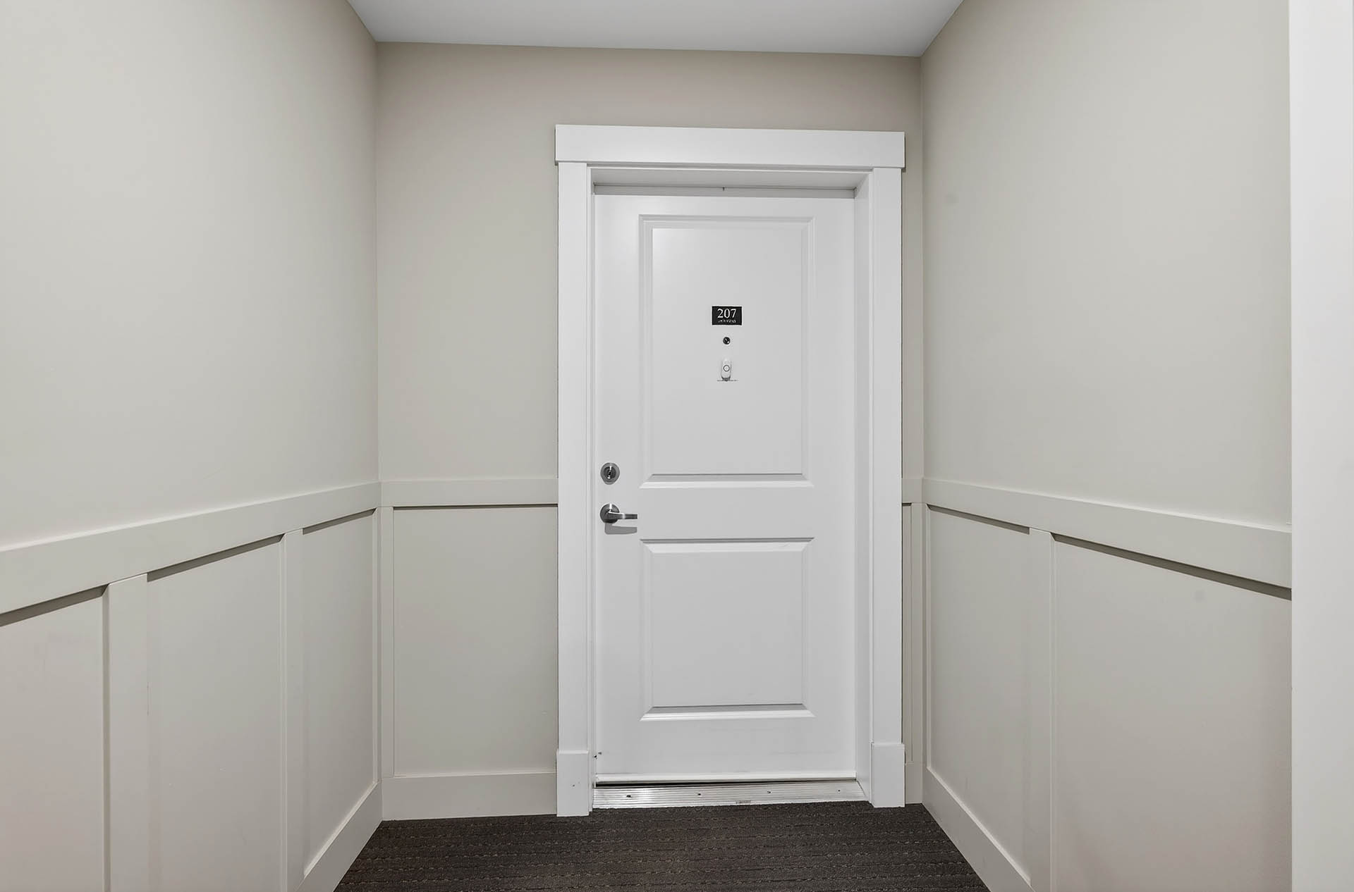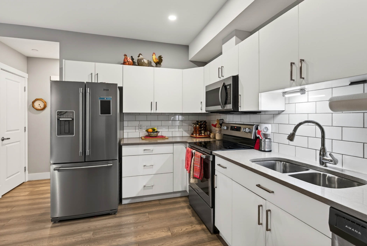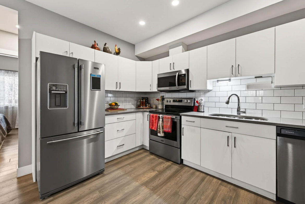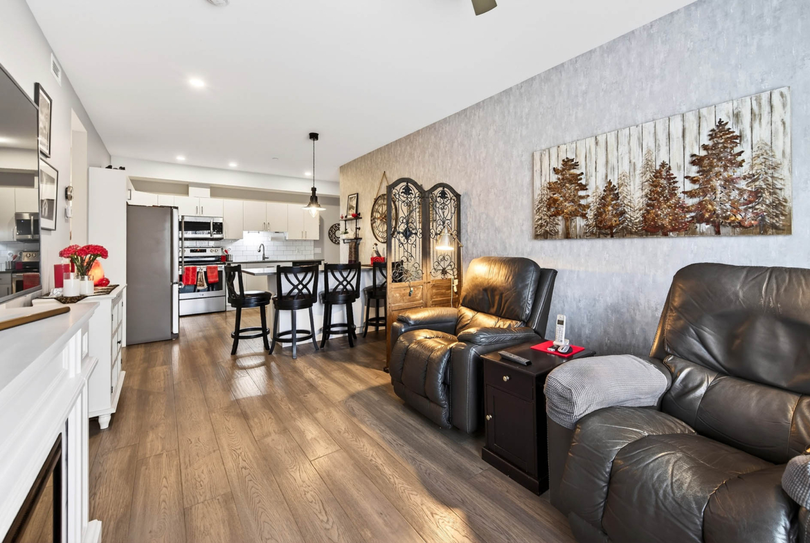 Welcome to this bright 1 bedroom + den corner unit, built in 2017 and offered by the original owners. Located on the second floor, this home features a larger-than-average deck with east and south exposure — perfect for morning sun and outdoor living. The open-concept kitchen includes upgraded appliances and an oversized island with added storage. The den (7’ x 8’4”) is ideal for a home office or guest space. Features include forced air natural gas heating with central A/C, in-suite laundry, secure fob entry with intercom, elevator access, a nearby storage locker, and a large community room for entertaining. Rentals are allowed and pets are permitted with strata approval. One covered parking stall is included. Enjoy an unbeatable downtown location with excellent walkability to shops, dining, and everyday amenities. A modern, move-in-ready home in a prime setting.