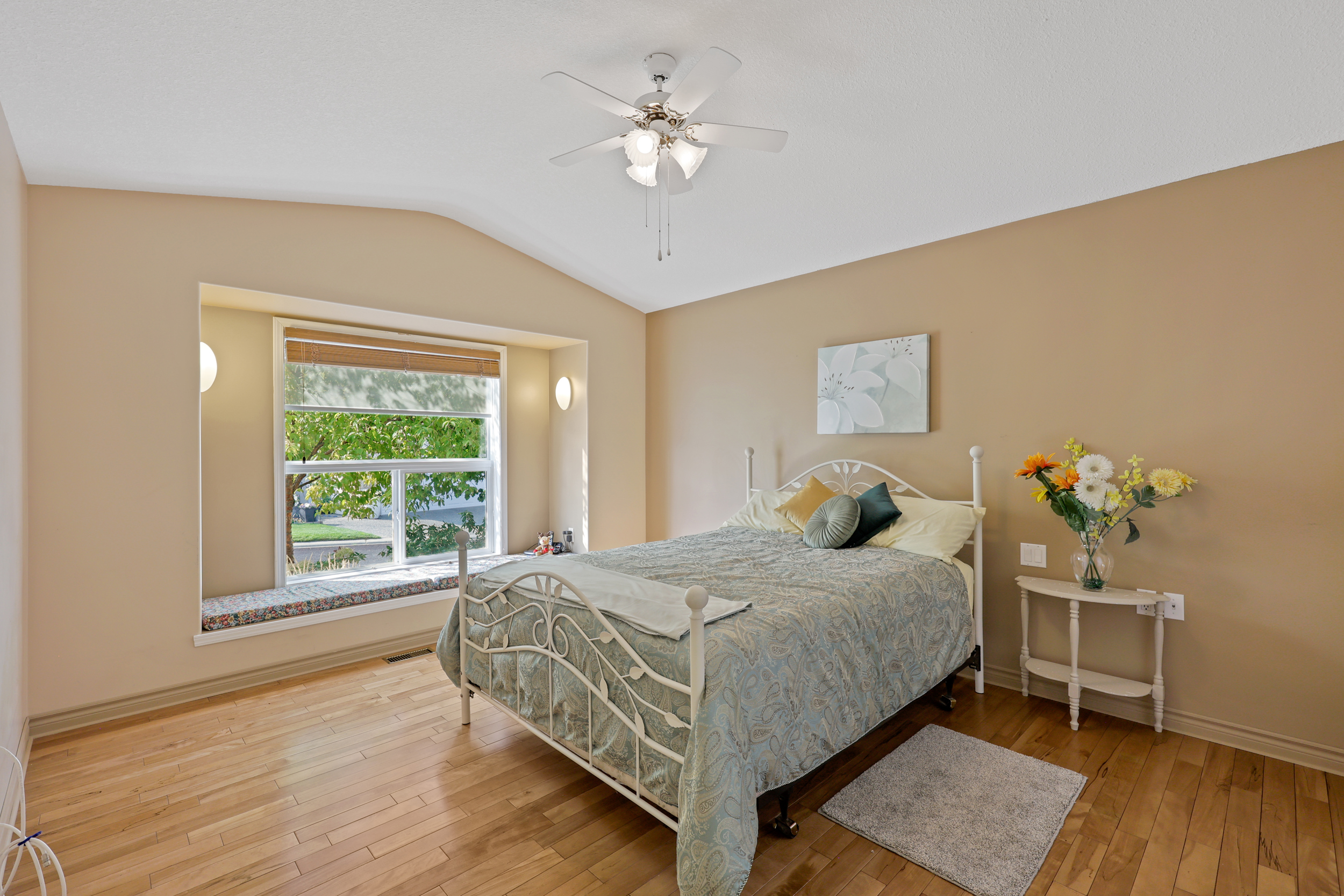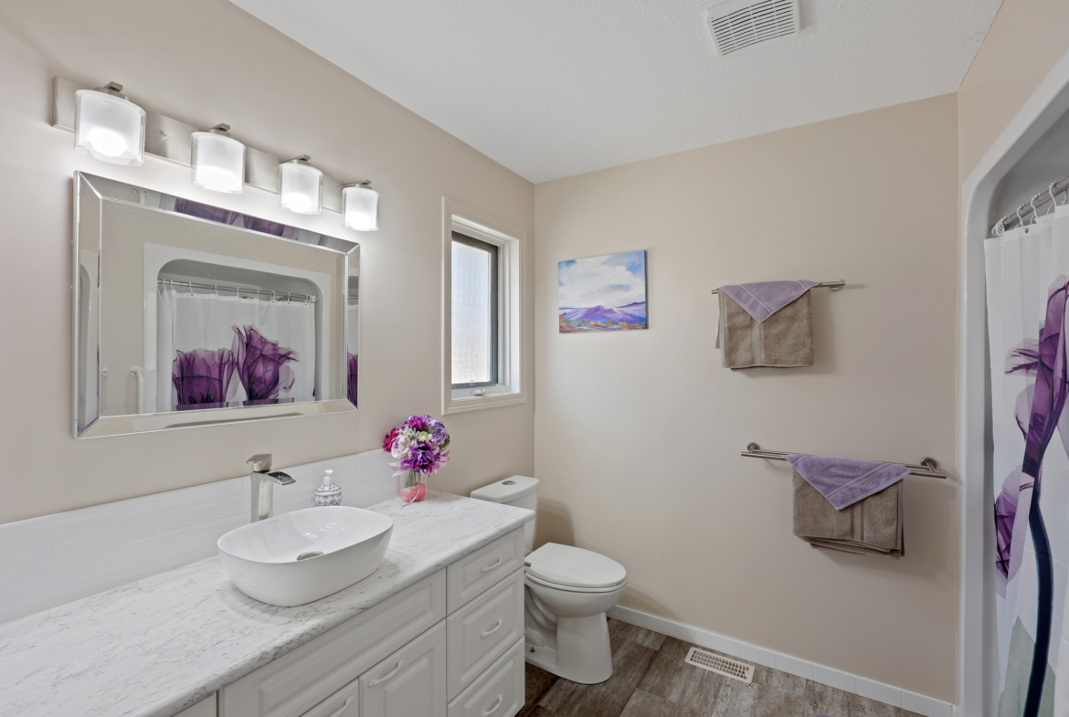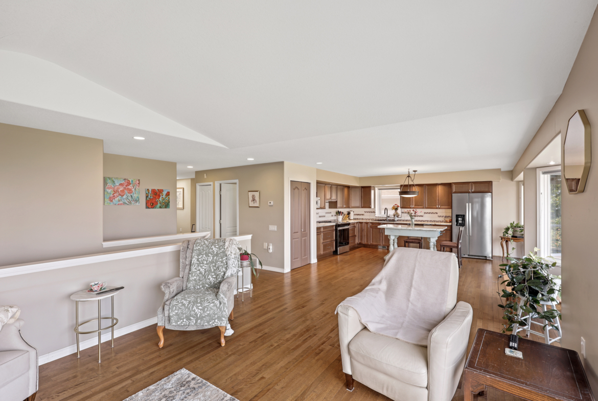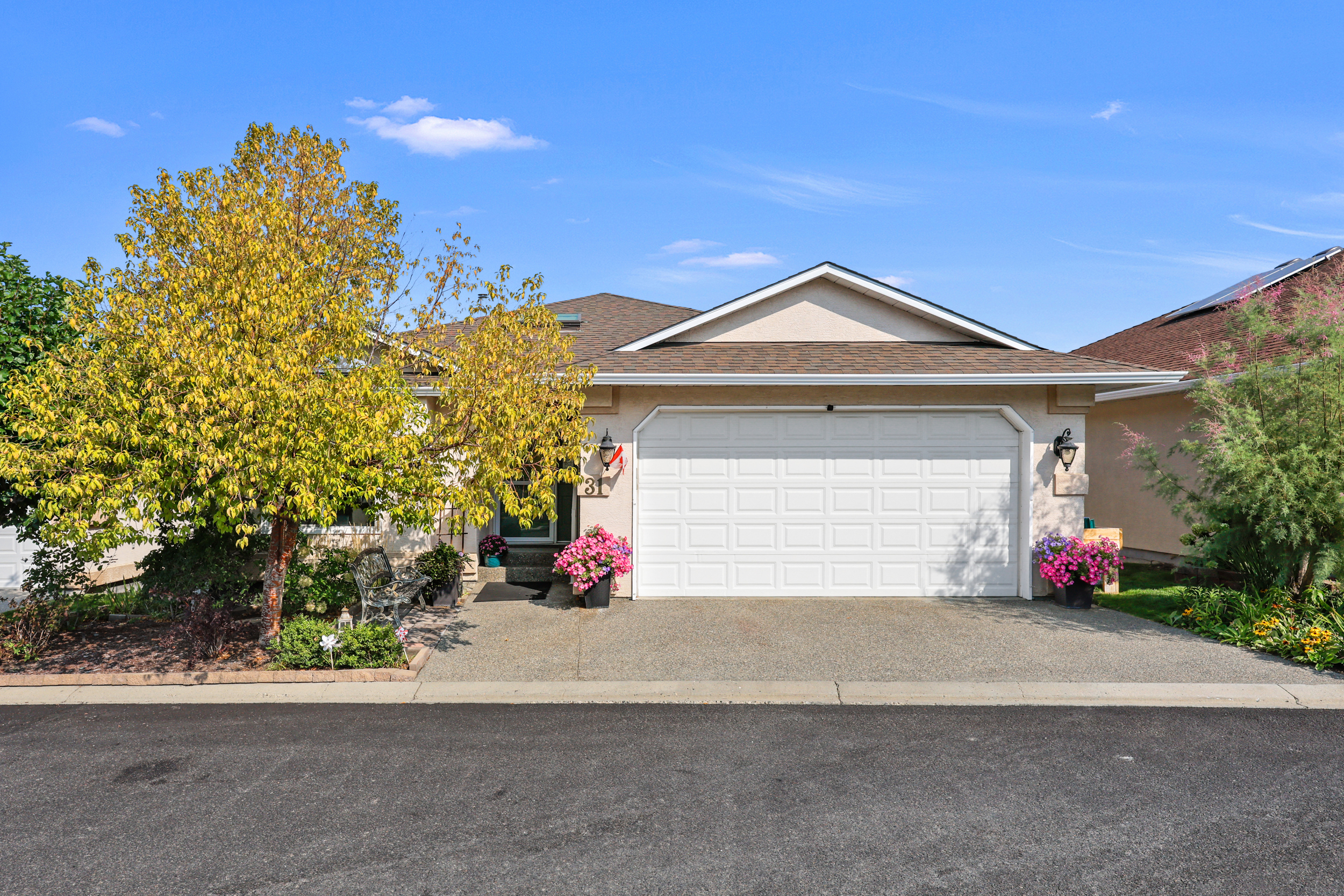 This was the builder’s choice lot in Crestview Heights, a beautifully maintained bareland strata complex in a private cul-de-sac with limited traffic. Bordering greenspace near the top of the community, this home offers panoramic views of the North and South Thompson Rivers, uninterrupted views of Mt. Paul, and city views from the covered deck without traffic noise. Completely finished up and down by the developer, it features a level-entry two-car garage and a walkout basement leading to a private patio where the lawn is maintained for you. The main level includes the primary bedroom and laundry for convenience, while updates in recent years include a new kitchen, appliances, hardwood floors, furnace, and central air. With RV parking and visitor parking available, and a low-maintenance lifestyle for $250/month in this secure gated 55+ community (one owner must be 55+), this is a rare opportunity. One dog or one cat is allowed, with no rentals. Quick possession available.