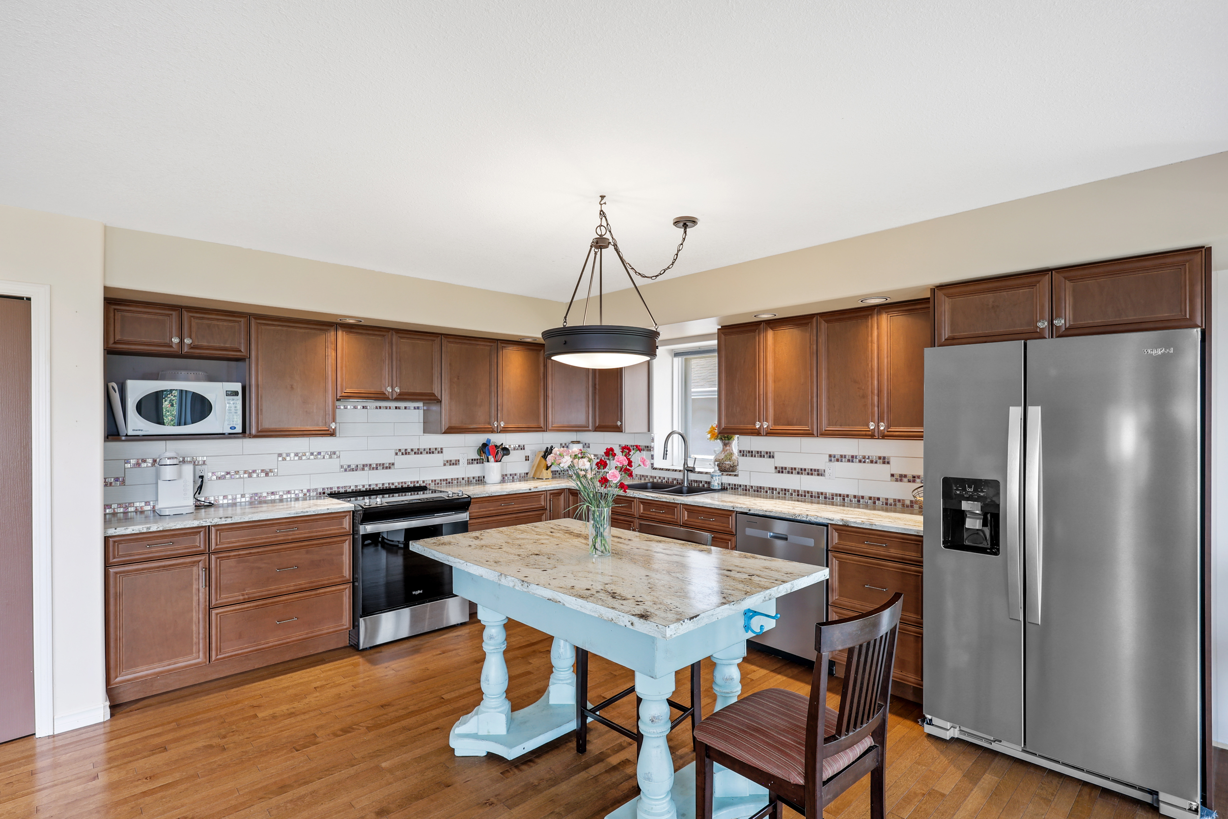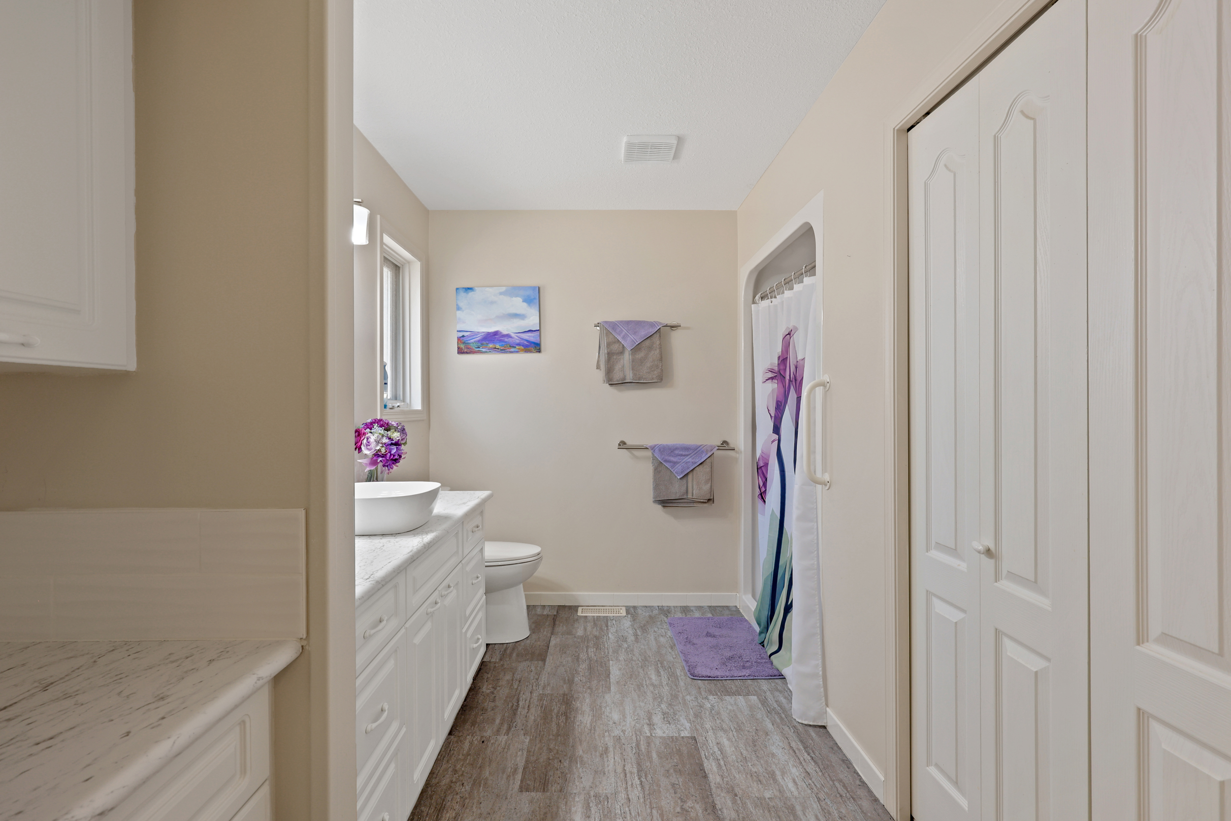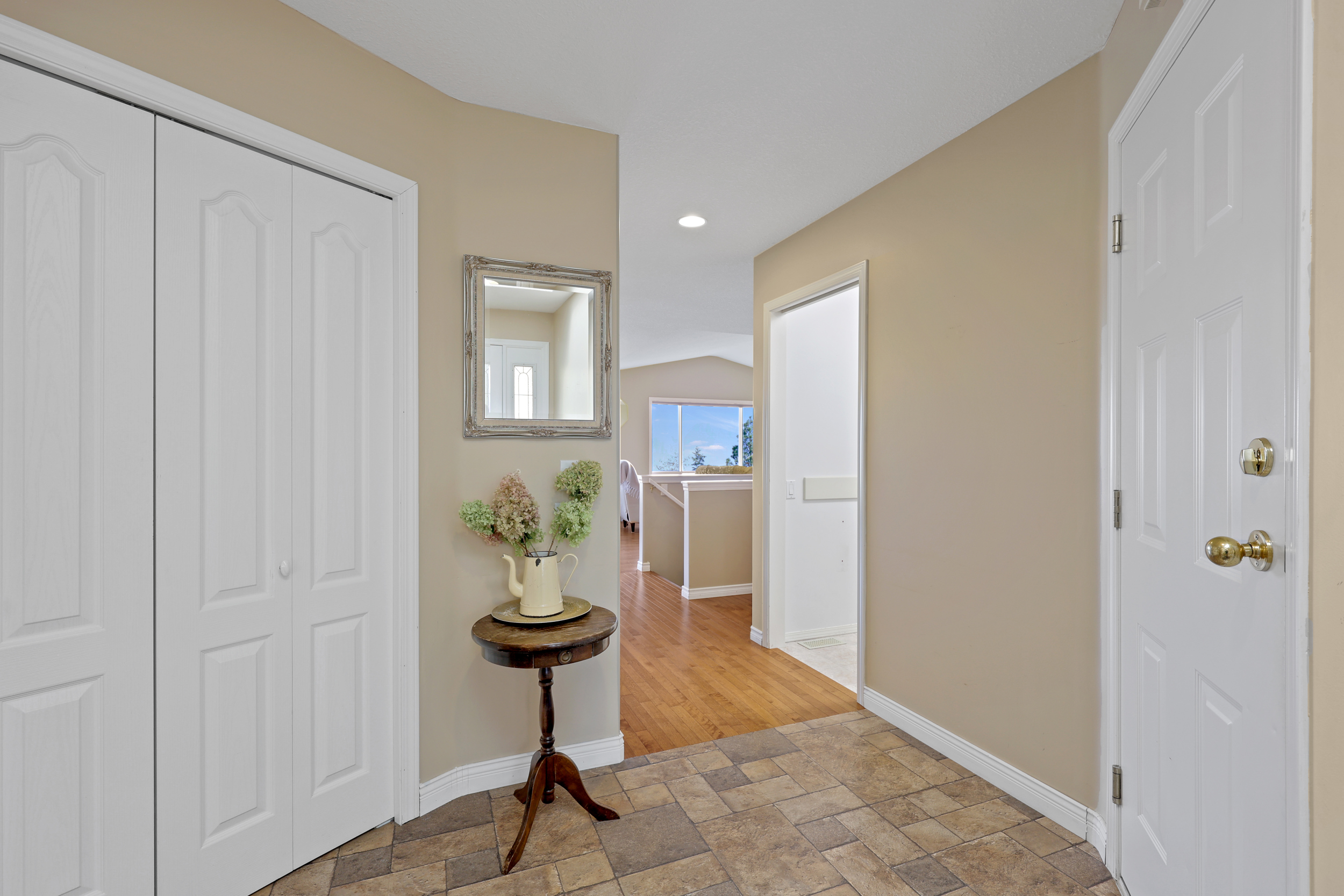 This was the builder’s choice lot in Crestview Heights, a beautifully maintained bareland strata complex in a private cul-de-sac with limited traffic. Bordering greenspace near the top of the community, this home offers panoramic views of the North and South Thompson Rivers, uninterrupted views of Mt. Paul, and city views from the covered deck without traffic noise. Completely finished up and down by the developer, it features a level-entry two-car garage and a walkout basement leading to a private patio where the lawn is maintained for you. The main level includes the primary bedroom and laundry for convenience, while updates in recent years include a new kitchen, appliances, hardwood floors, furnace, and central air. With RV parking and visitor parking available, and a low-maintenance lifestyle for $250/month in this secure gated 55+ community (one owner must be 55+), this is a rare opportunity. One dog or one cat is allowed, with no rentals. Quick possession available.